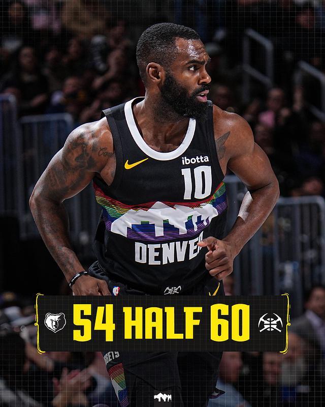 次节比赛,掘金连续两节单节得分30分保持稳定进攻火力,且连续两节限制灰熊单节不足30分。掘金继续保持出色的进攻压制约基奇次节1中0仅借助罚球得到2分,但穆雷与小哈达威接连得分,引领掘金单节30-26净胜4分,上半场比赛结束掘金扩大60-54领先灰熊6分优势。前两节比赛,掘金三分9中5,约基奇11+5+5与小哈达威3中3得到11分;灰熊三分26中9,全队没有球员得分上双。