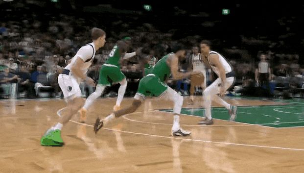 塔图姆第三节开始,顶着防守突破打板了;低重心突破强拔中投了,左底角被锁死后强拔三分了——前6投不中后是5连中。杰伦前6投1中后,11投8中。那一波浪潮,春风又绿查尔斯河岸。
